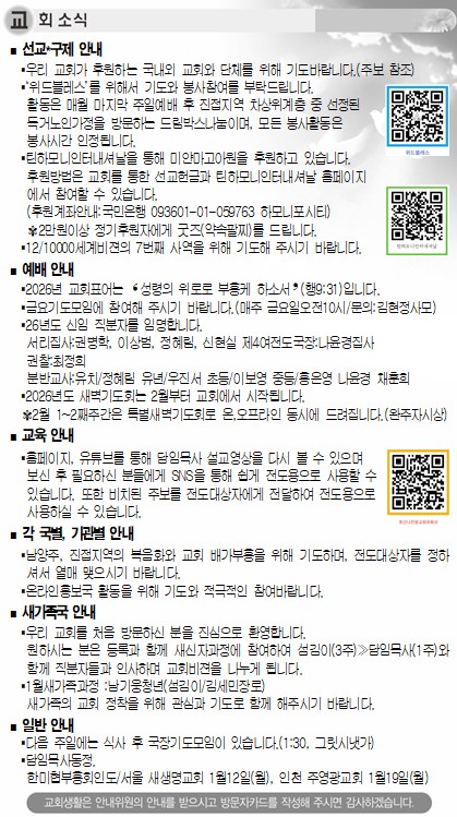 ÁÖÀÏ¿¹¹è ÁÖº¸ 2026.01.11